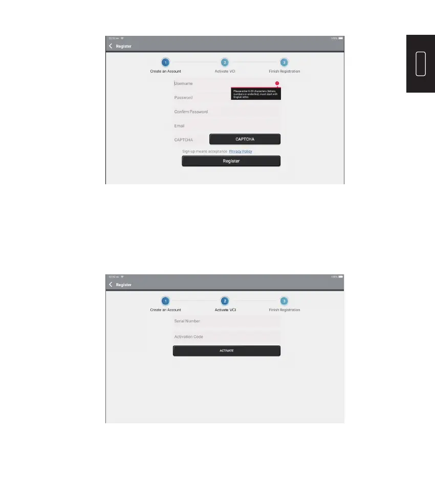 After inputting the information required, tap “Register”. The tablet will enter the VCI