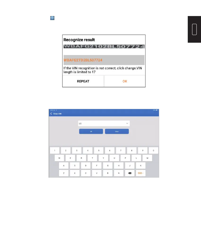 Tap to scan the VIN character. If the VIN character cannot be recognized,