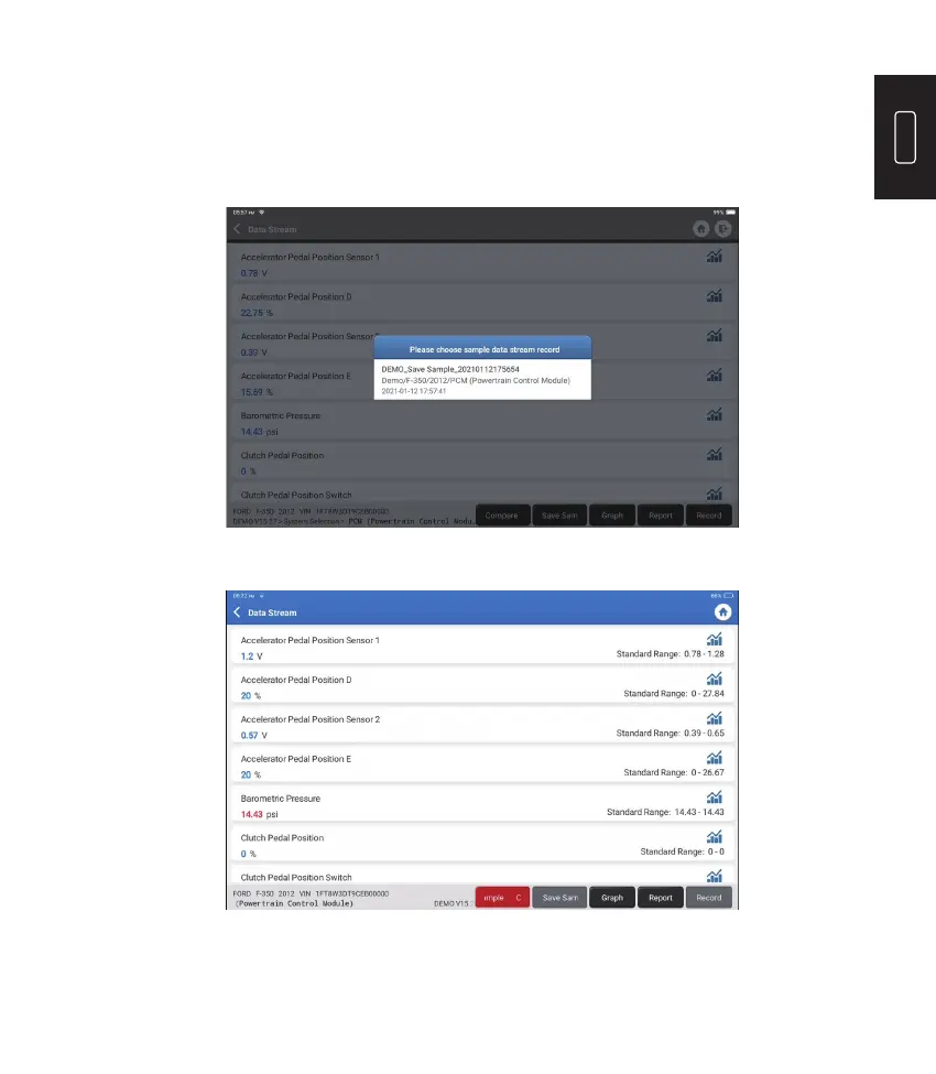 Compare Sample: Tap “Compare Sample” to select the saved Data Stream