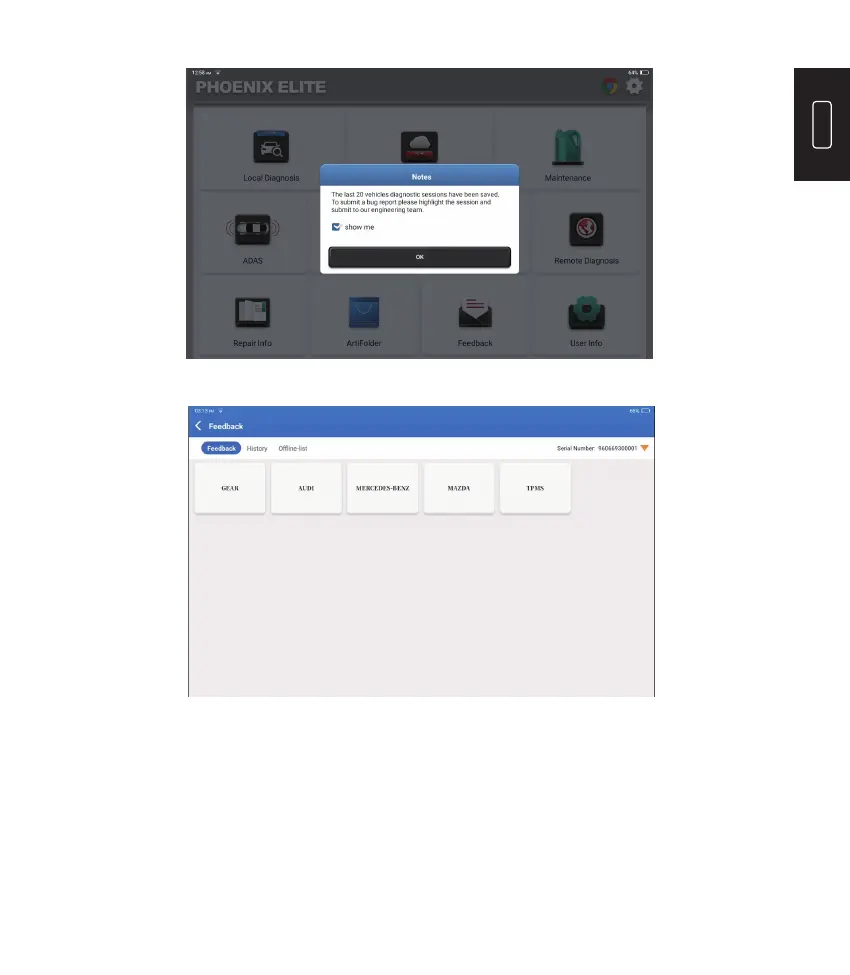 Tap “OK” to enter the vehicle diagnostic feedback selection menu.