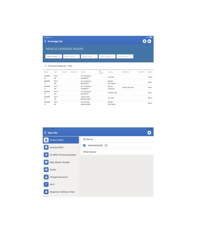 To view the supported functions and car systems after selecting the vehicle make, model,