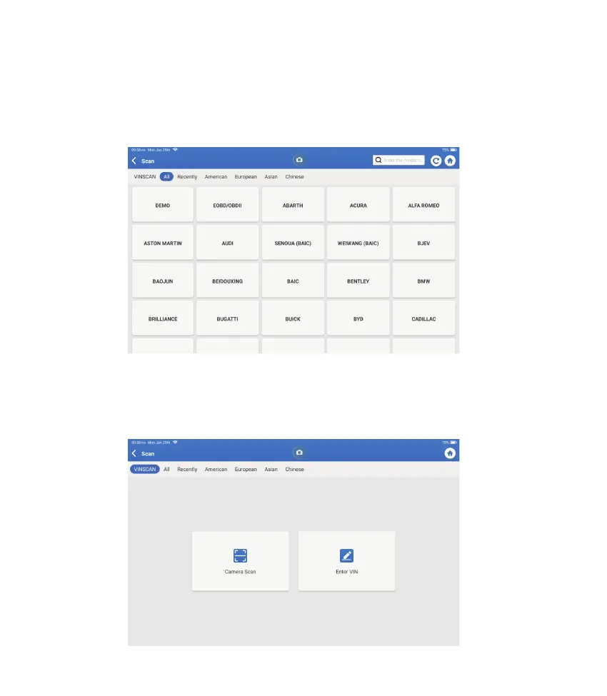 Tap “VINSCAN." The following page will appear:
