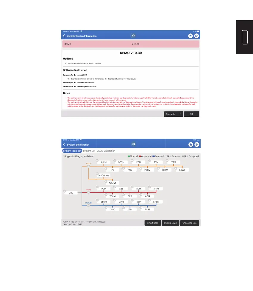 Tap “OK." Select “Demo" from the pop-up Notes. Then select a vehicle make. The tablet