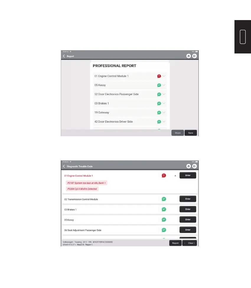 Tapez sur « Rapport de santé ». Le système commence à scanner les CDP et afche les