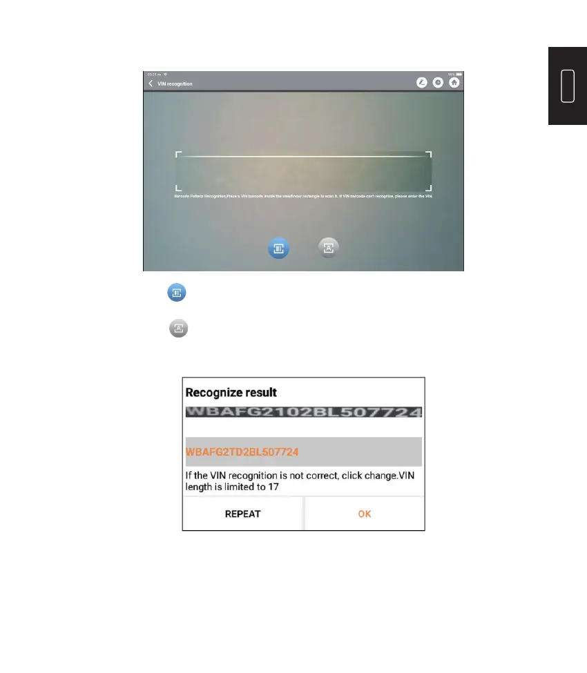 Toccare per scansionare il carattere VIN. Se il carattere VIN non può essere