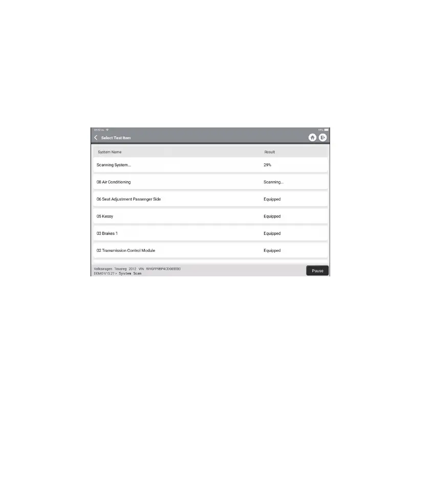 Questa funzione esegue automaticamente la scansione di tutti i sistemi del veicolo.