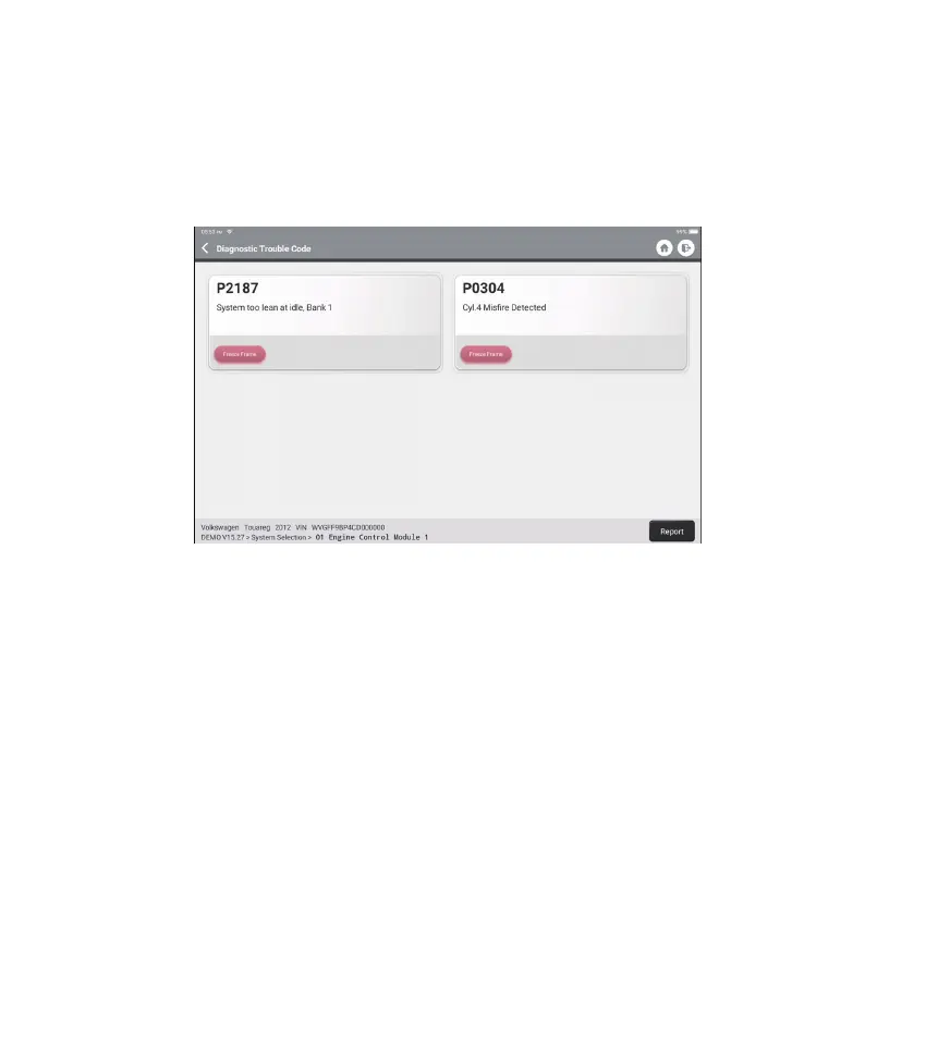 Toccare "Leggi codice guasto". Sullo schermo verranno visualizzati i risultati della