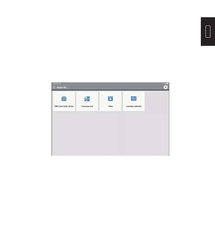 Toccare "Info riparazione" nel menu iniziale. Viene visualizzata la seguente pagina: