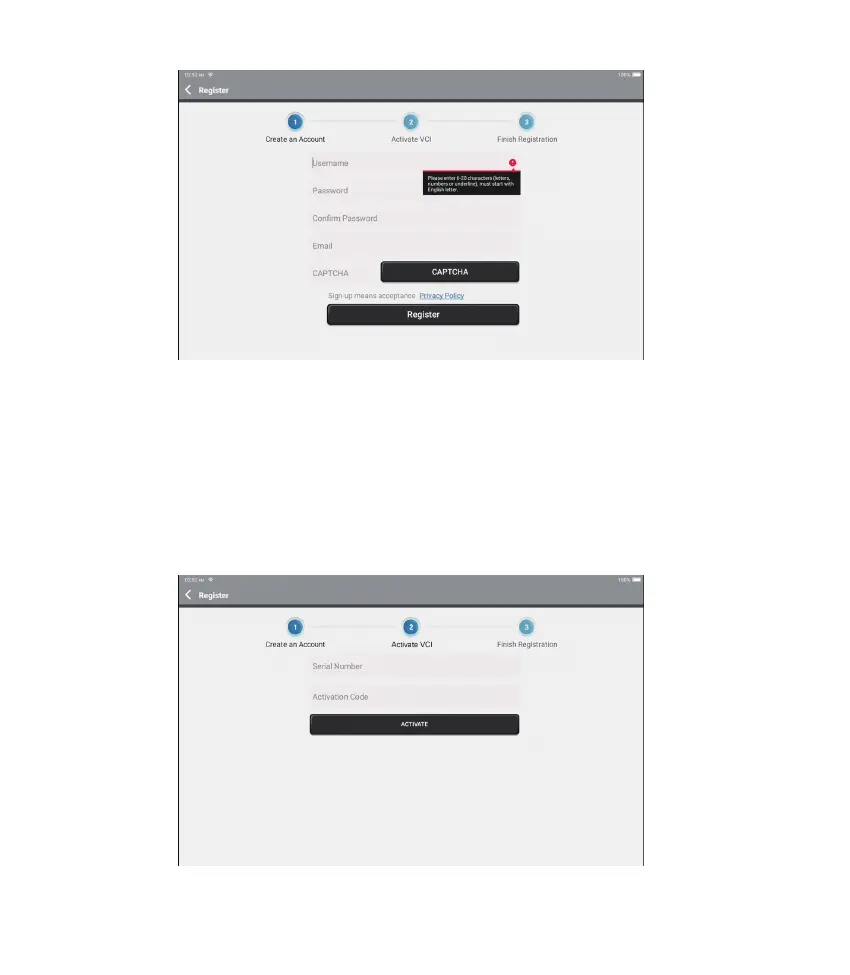 Ingresa el número de serie y el código de activación para activar y vincular el dongle VCI de