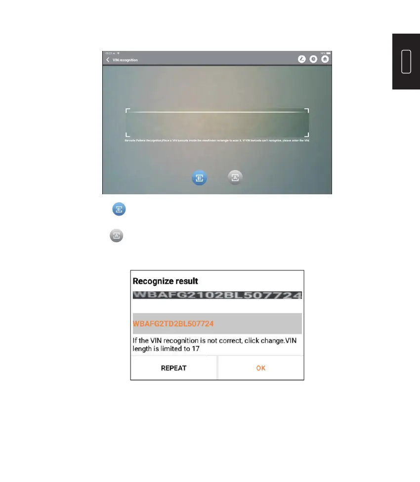 Toca para escanear el carácter VIN. Si no se puede reconocer el carácter VIN,