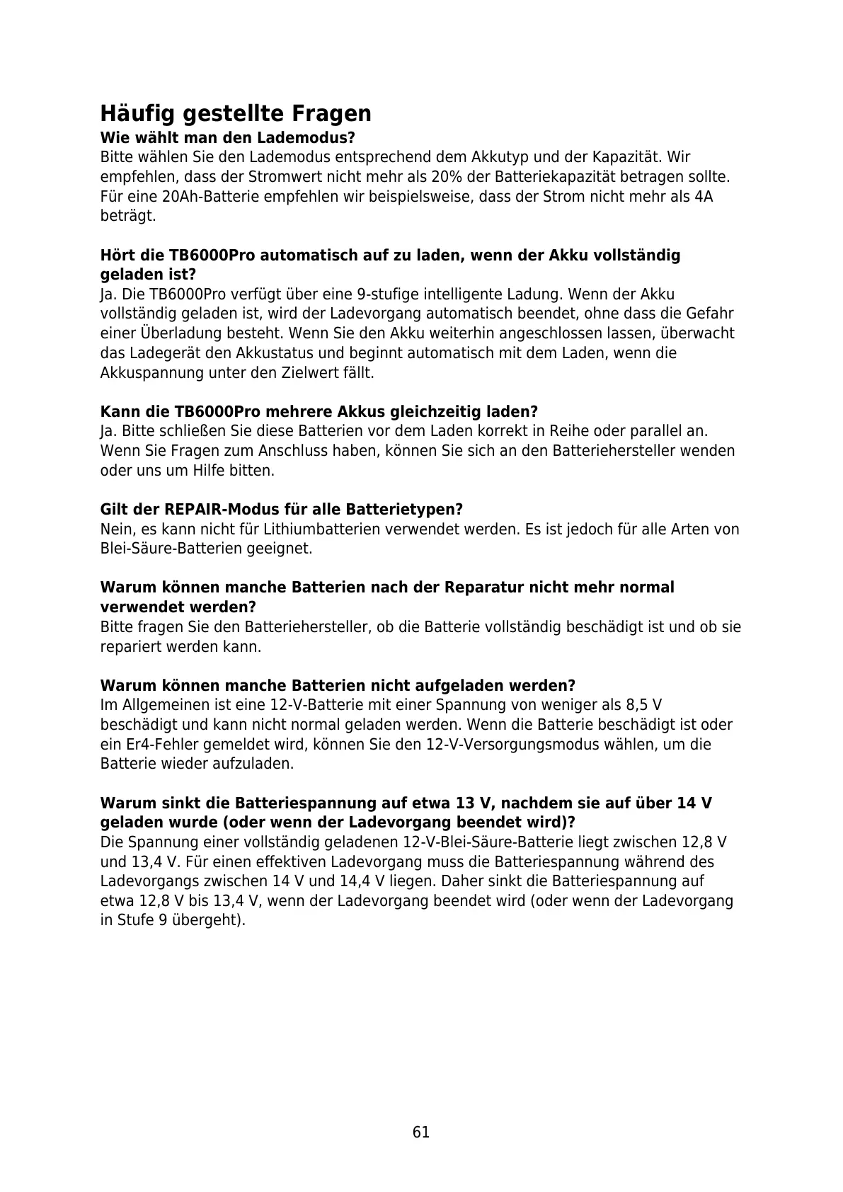 Ja. Die TB6000Pro verfügt über eine 9-stufige intelligente Ladung. Wenn der Akku