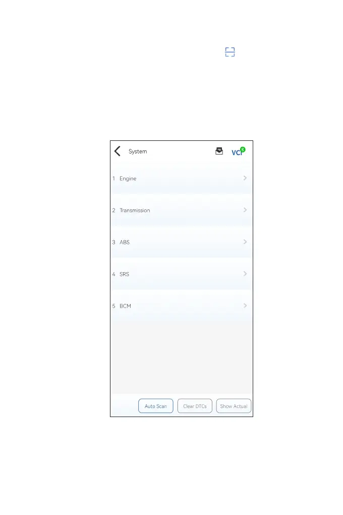 4. A systems menu will display after the vehicle is identied.