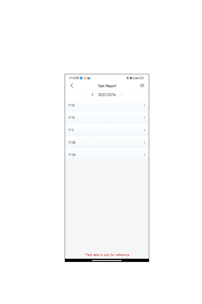 1. From the test screen, tap Test Report. The result screen will appear.