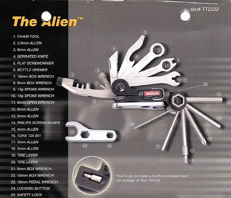 Topeak Alien Series - Alien Tool Components; Tool Identification; Built-in Compartment