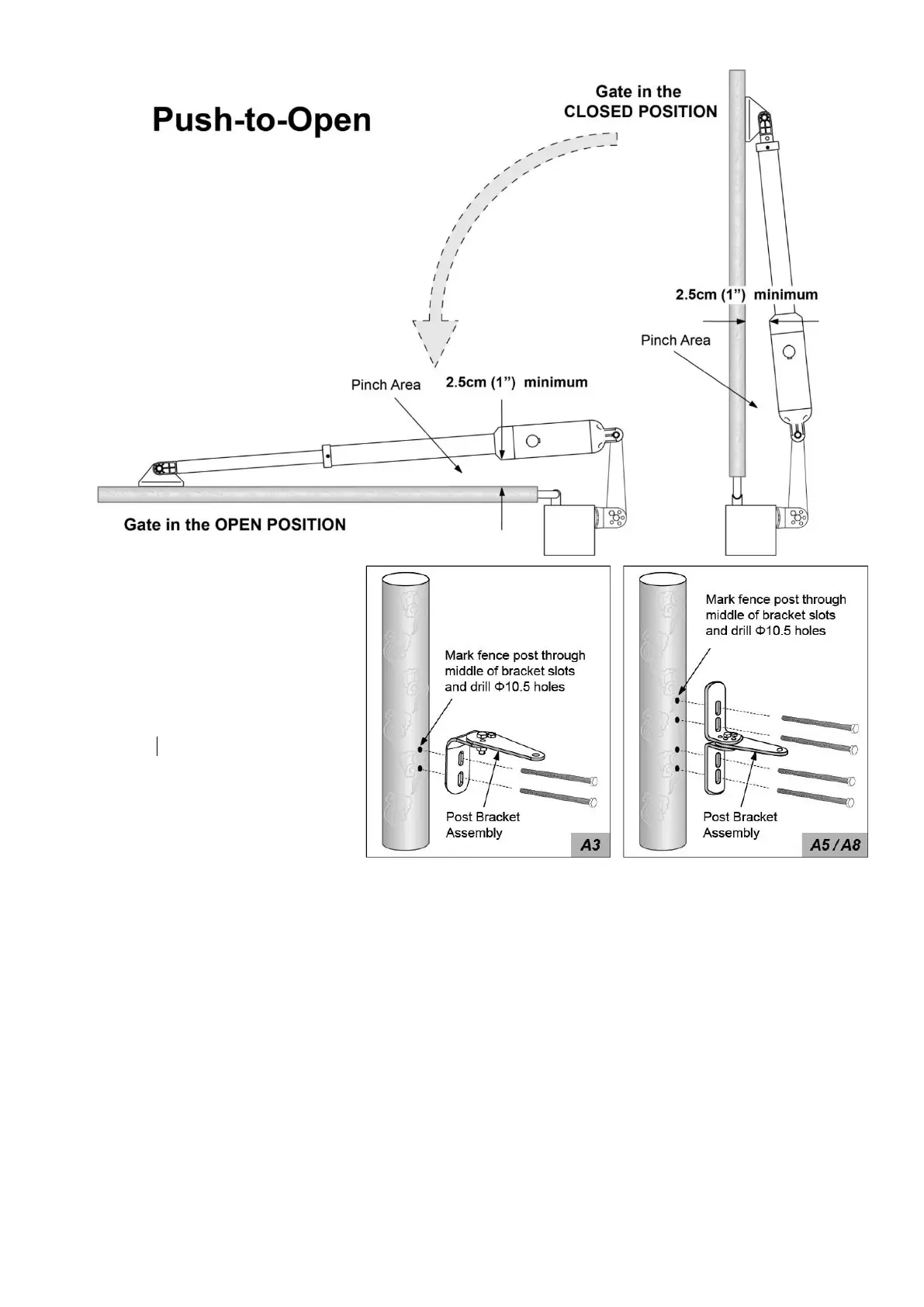 assy. and the drilled holes in the gate post. Fasten each bolt with one ¢10 washer, one ¢10 lock washer, and