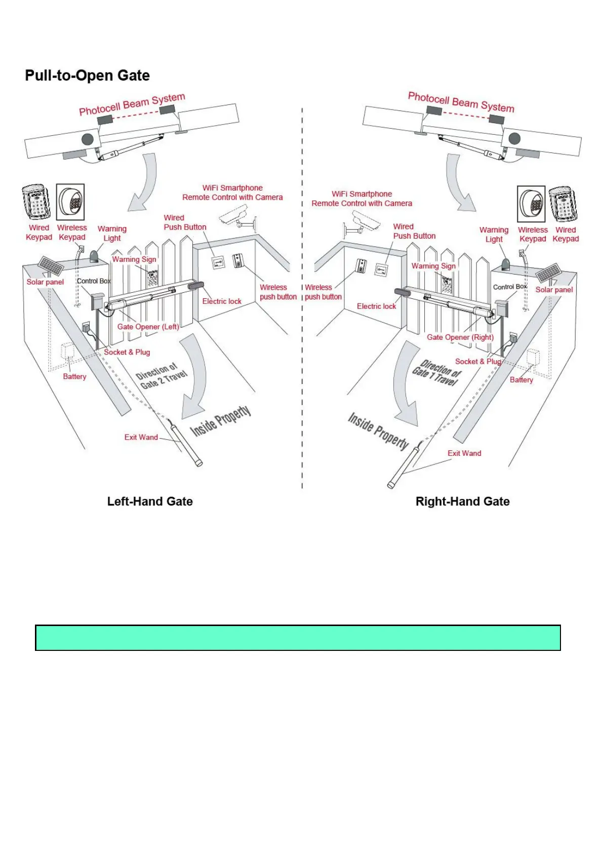 There are two installation types for the gate opener, Pull-to-Open and Push-to-Open.