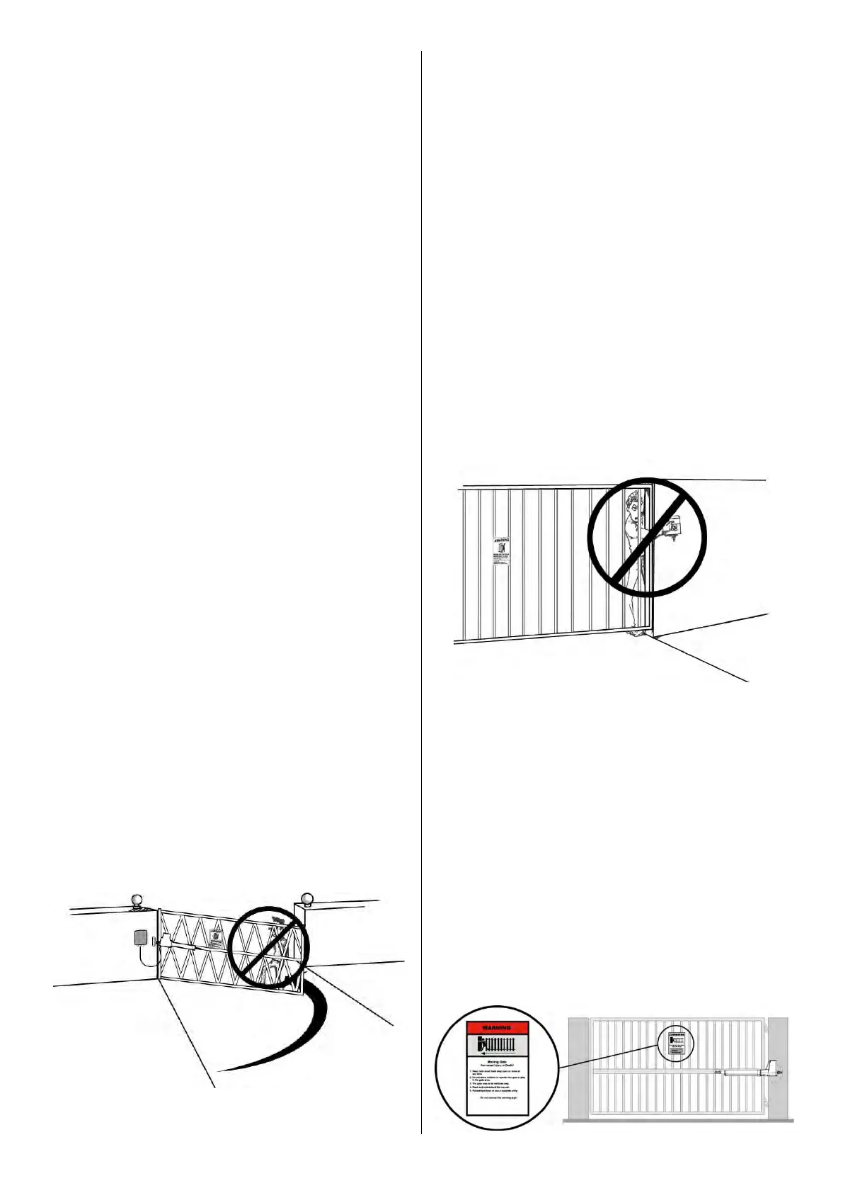 10. Never mount any device that operates the gate