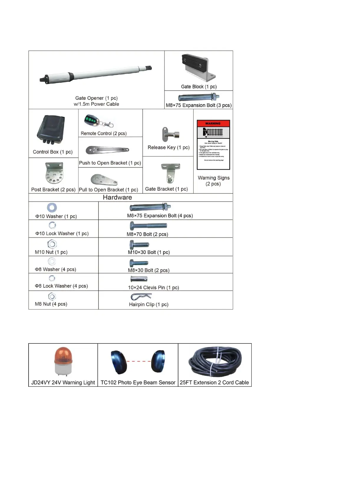 Topens CASAR HJ4021 - Single Gate Opener Parts List(Hj4021; Accessories Parts (Included in some Models, Refers to the Actual Package)