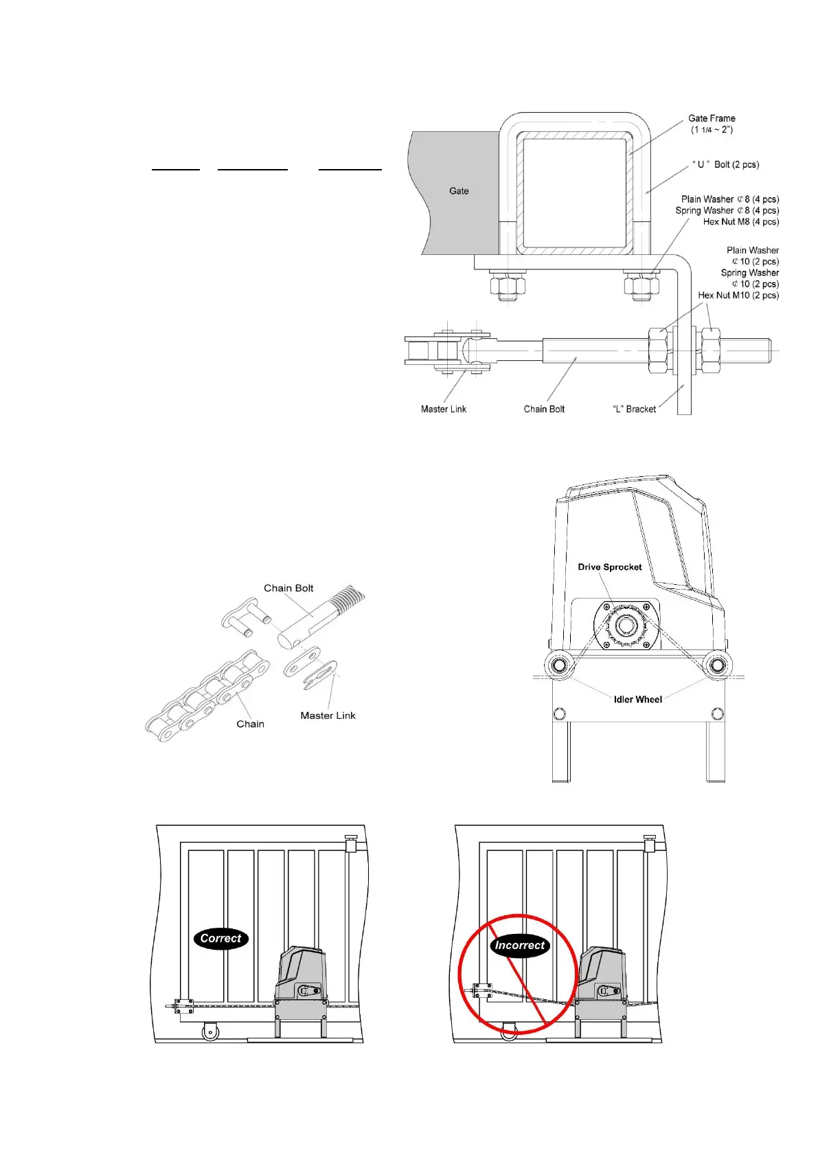 attach the chain brackets to gate frame.
