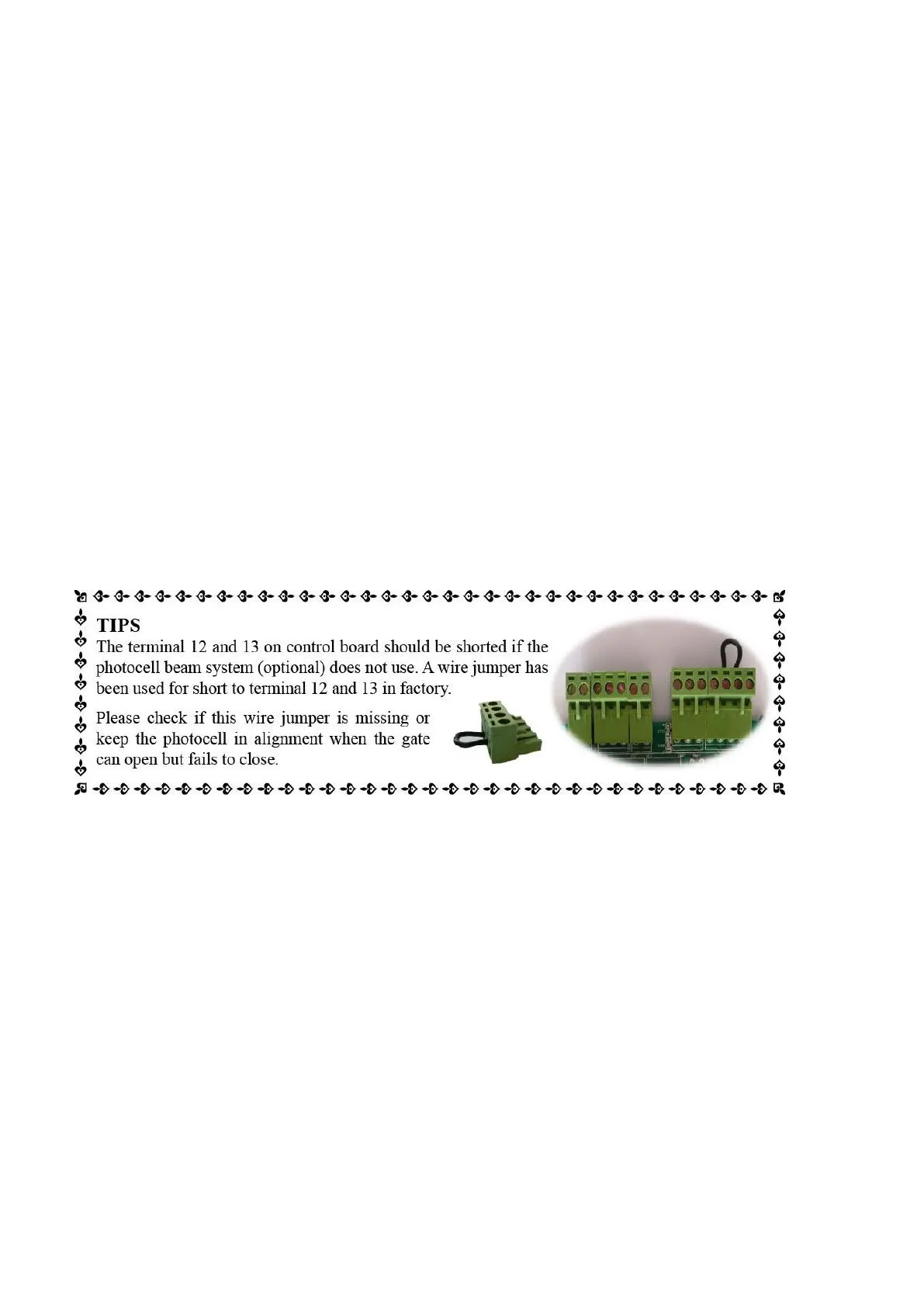 terminal to the “13” terminal. Also the “+ ~” and “- ~” terminals of the photocell’s receiver should be