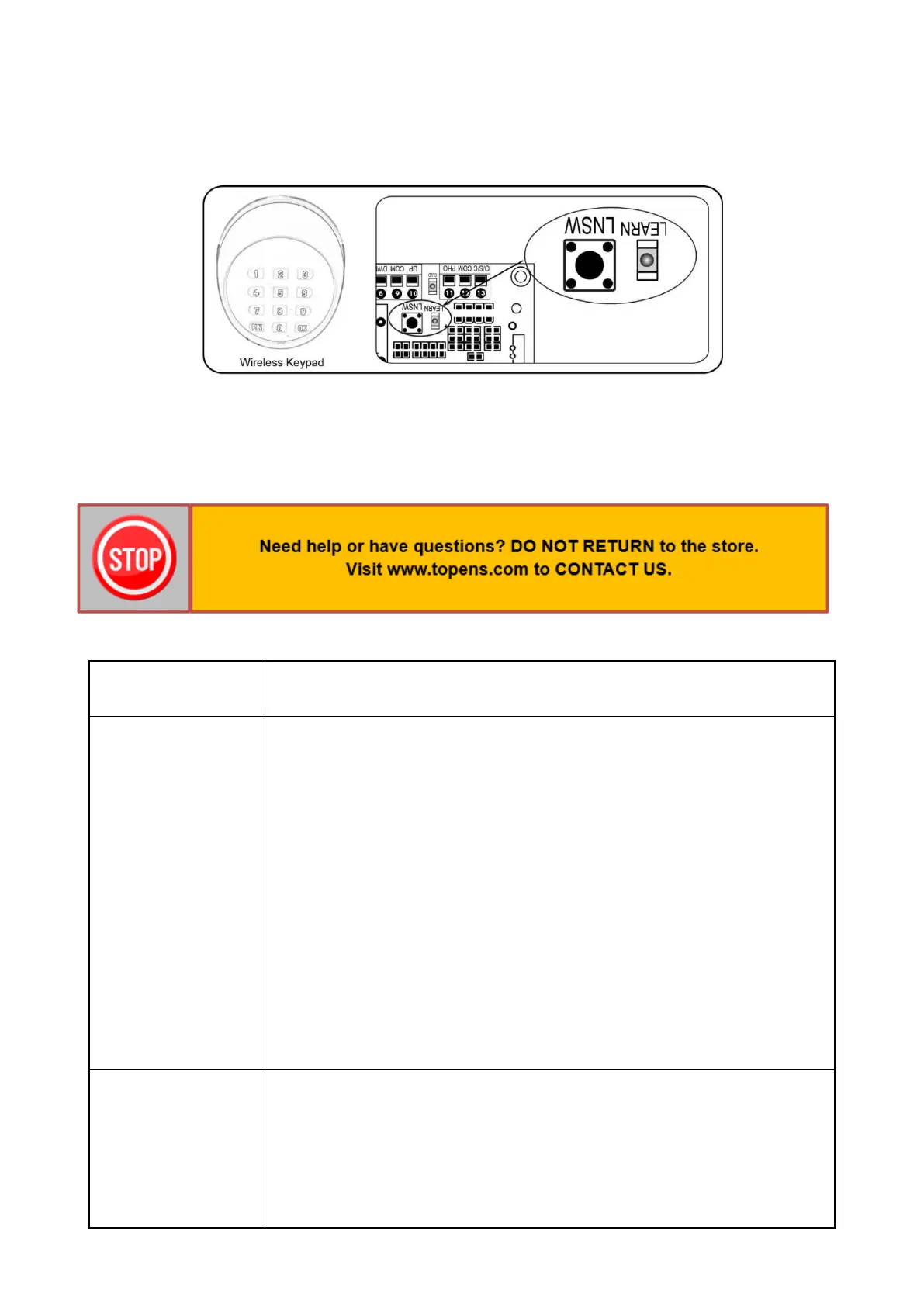 password and then press the “PIN” to confirm the new setting, LEARN LED will flash for 3 seconds and then
