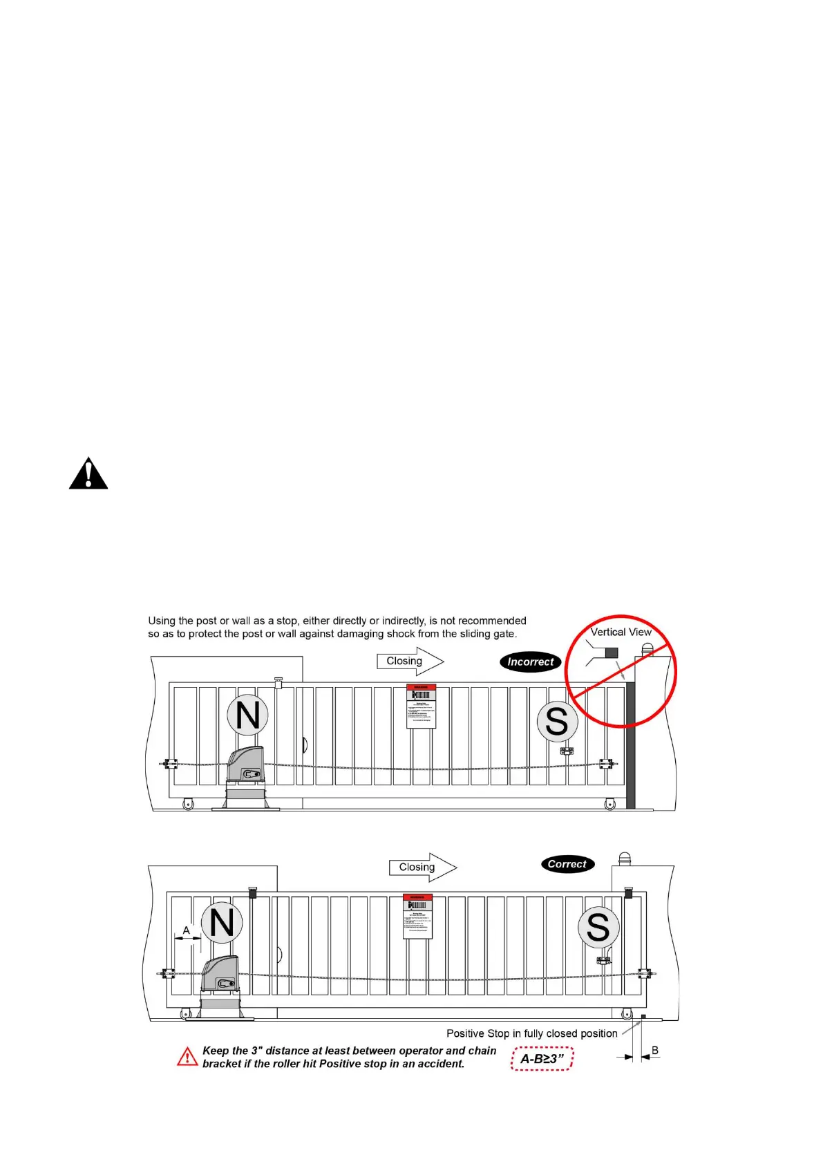 • Before installing the gate opener, check that all moving part as well as the sliding gate is in good