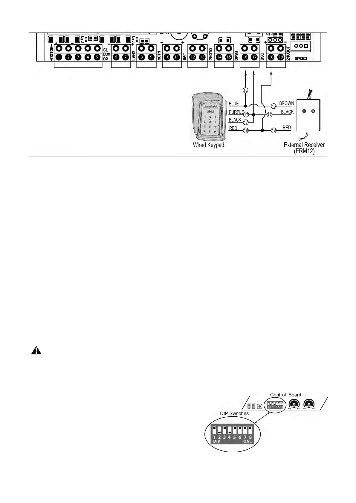 unexpected gate moving. Carefully adjust the DIP switches to avoid the risk of machine damage and