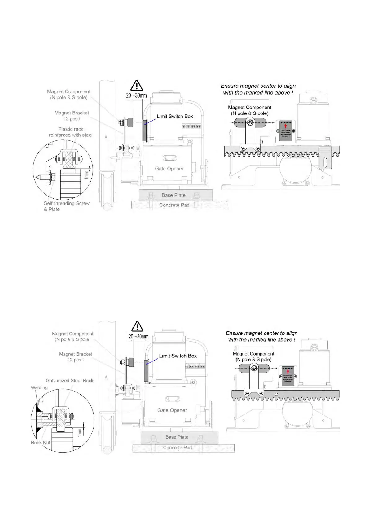 be made even after it has been fixed. Please keep 1.0mm space between the rack and the gear to avoid the