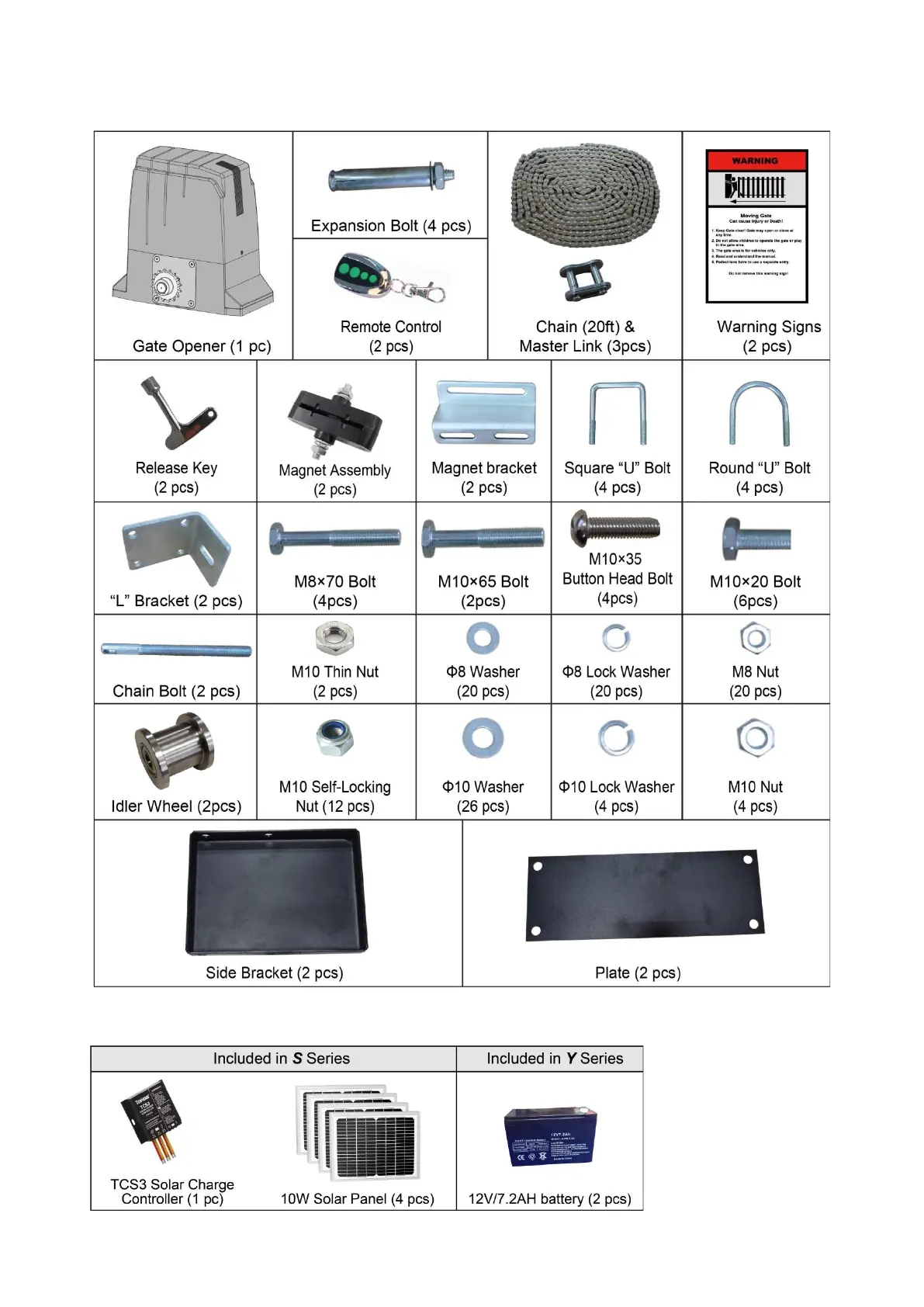 Topens DKC2000 - Parts List; Included Components; Extra Parts; S and Y Series Extras