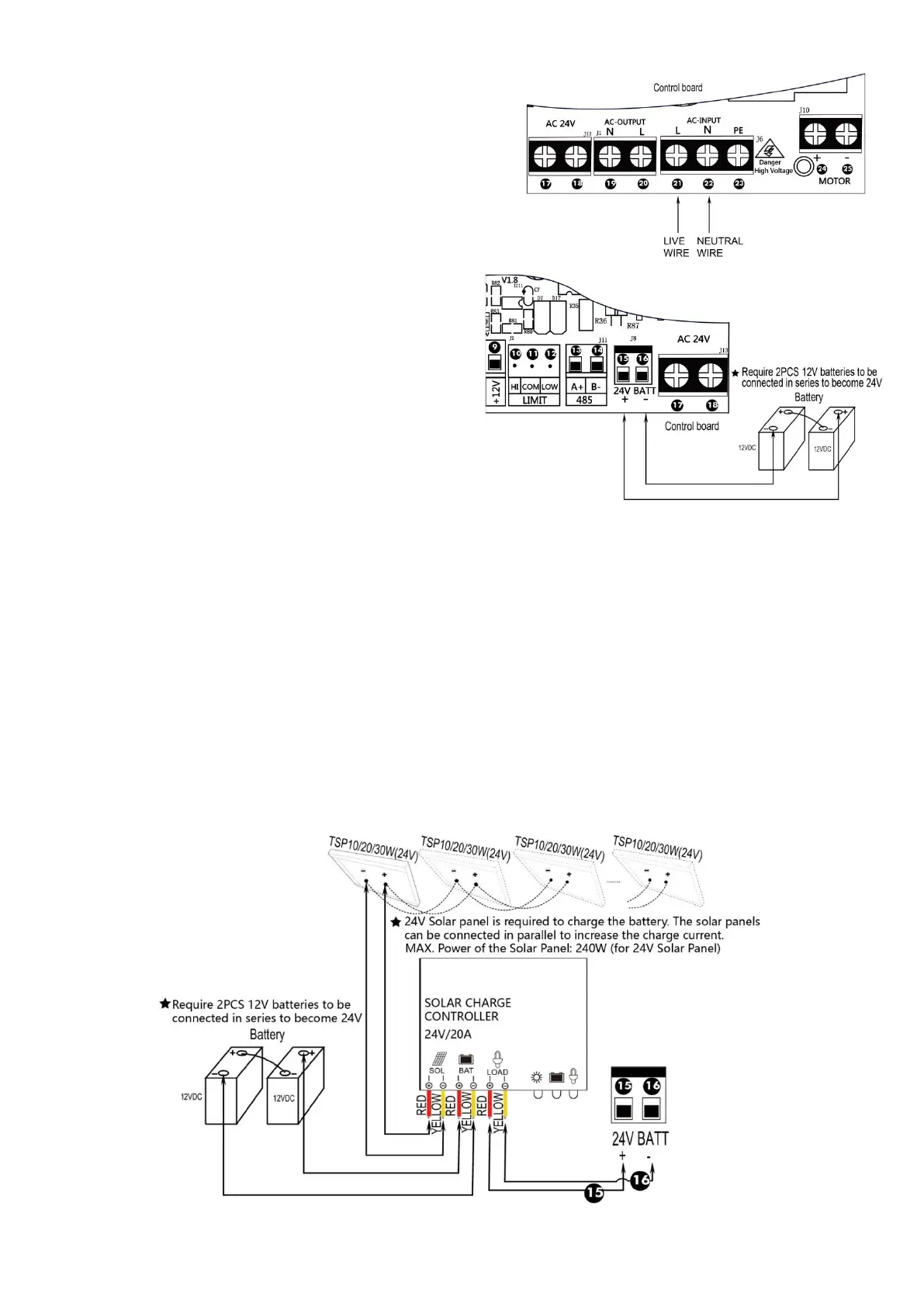 the batteries. Please connect the batteries & the solar panels & solar controller refer to the following wiring