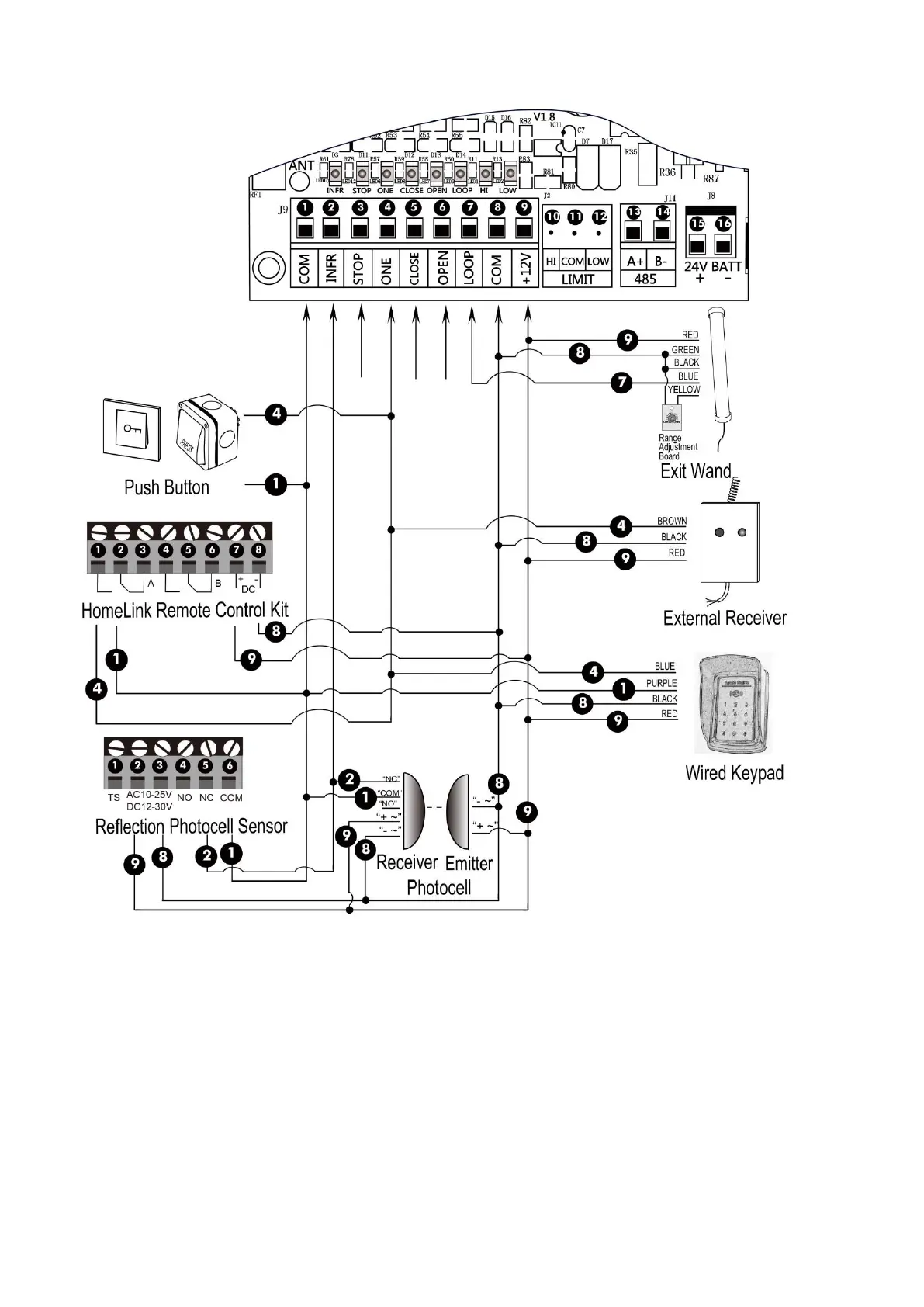 The BLACK wire of the limit switches should be connected to the “COM” terminal (#11).