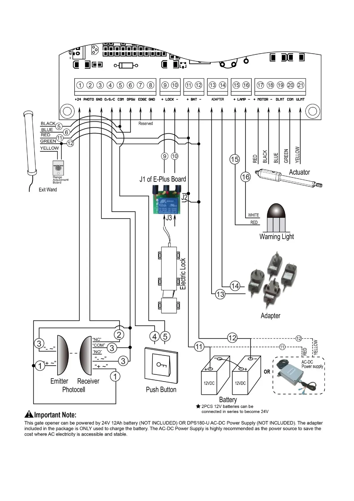 ―DLMT‖ terminal(#19), the green wire into ―COM‖ terminal(#20), and the yellow wire into ―ULMT‖ terminal