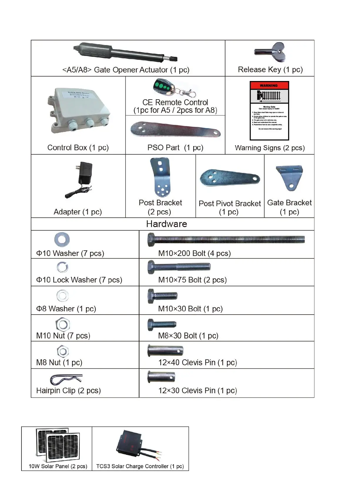 A5/A8 Parts List