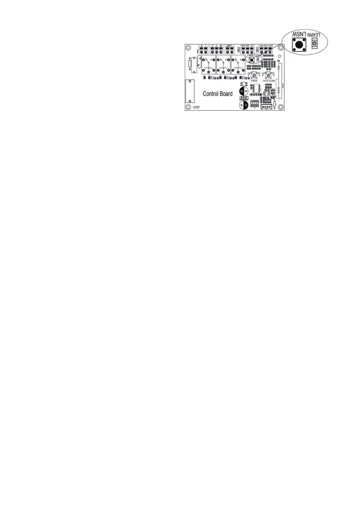Step 2. Press and release “PIN” button on the keypad, LEARN LED of the control board is ON waiting
