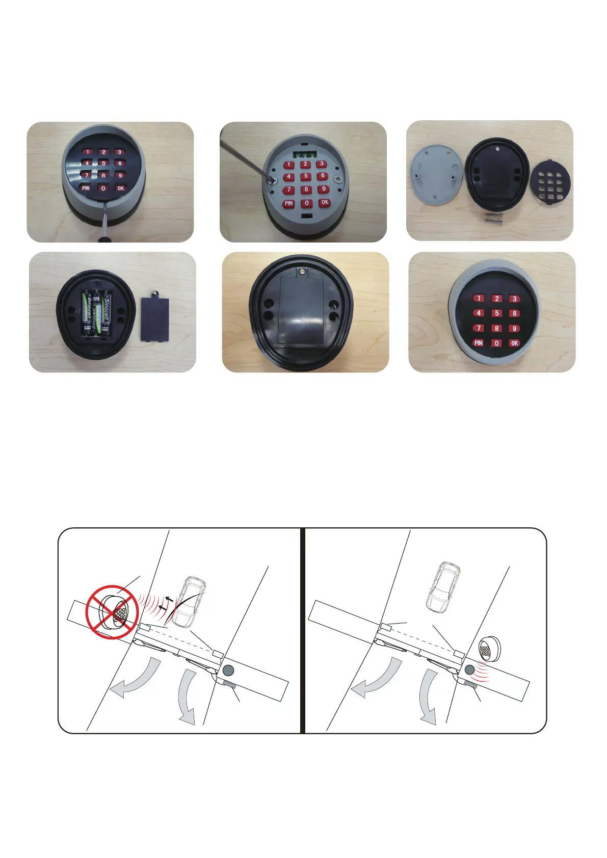 The wireless keypad should be installed outside of the property (Pull to Open) and on the same