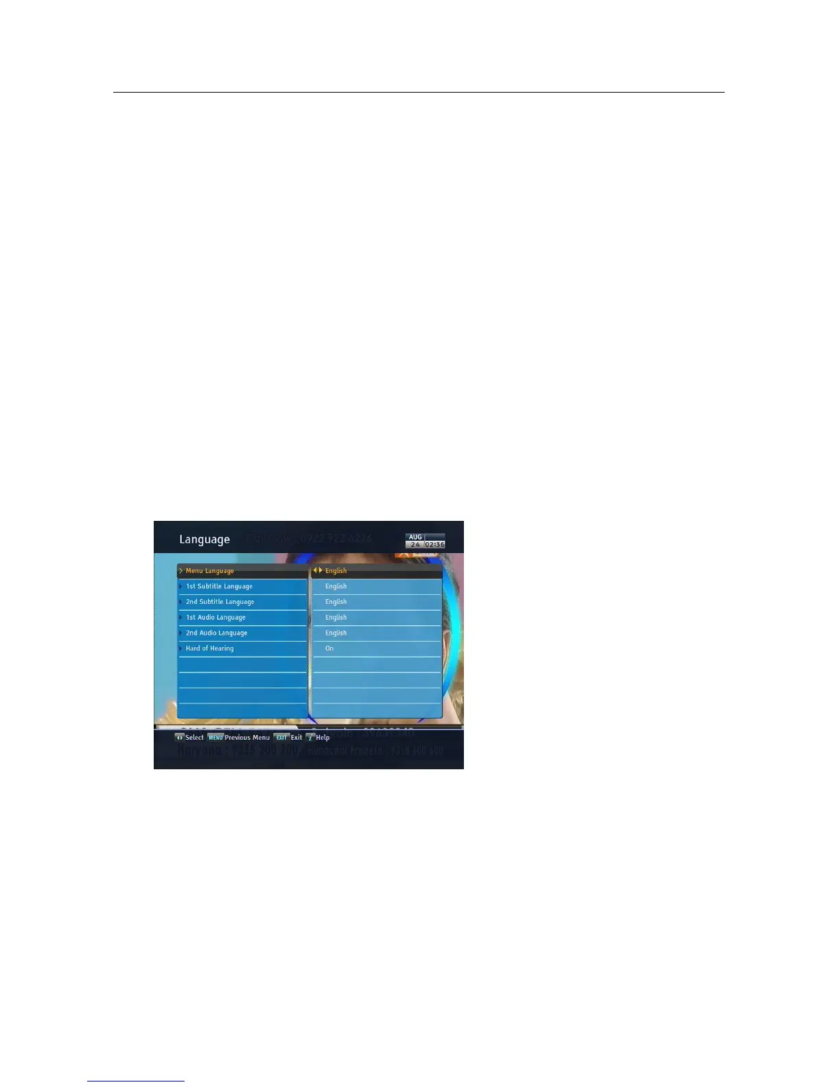 The digital receiver provides menus in several different lan-