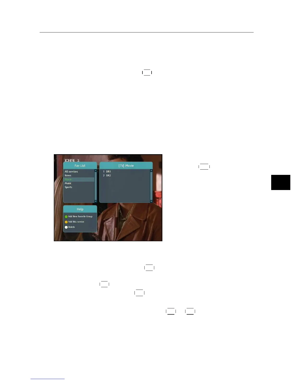 To select a favourite service, put the hightlight bar on a desired