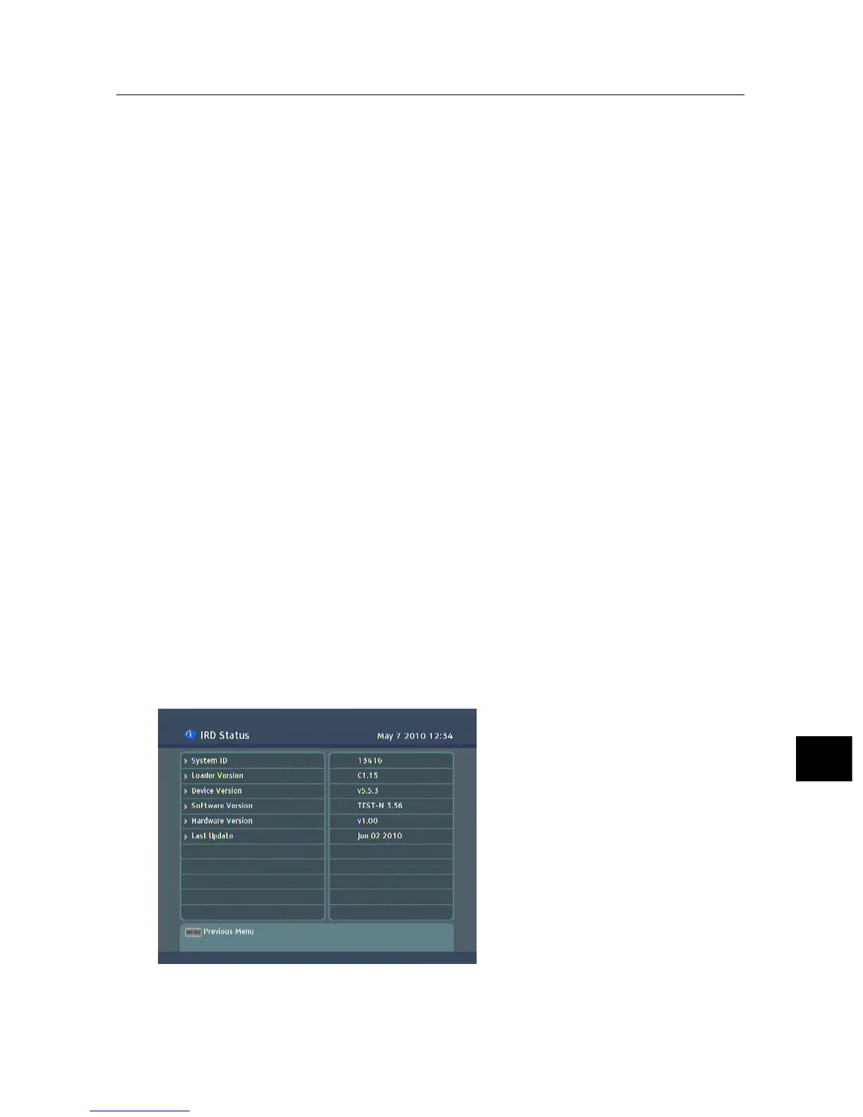 Information > IRD Status menu.