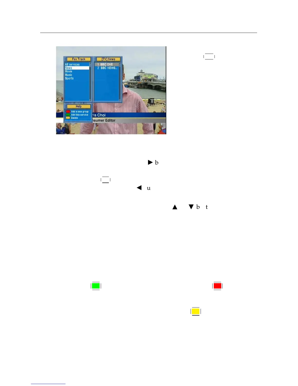 To select a favourite service, put the hightlight bar on a desired