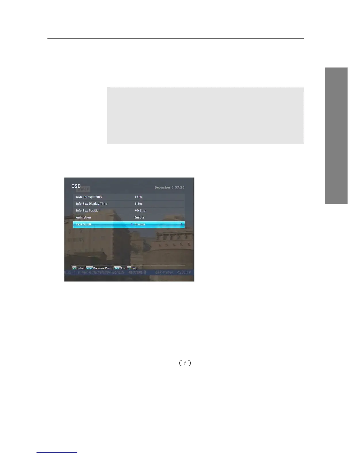 To adjust the transparency level of the OSD, set the OSD Trans-