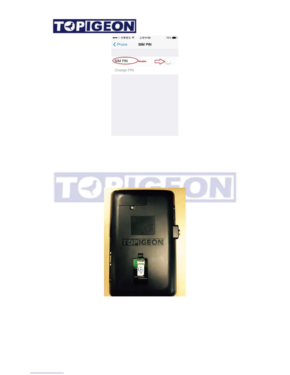 TOPigeon iPigeon V8 - SIM Card Installation; Inserting SIM into iPigeon
