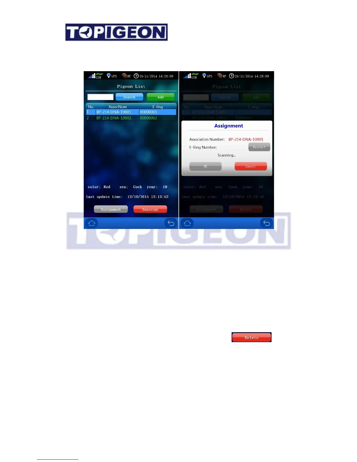 The Ring Assignment screen is similar to the Pigeon Manager where you can Add and
