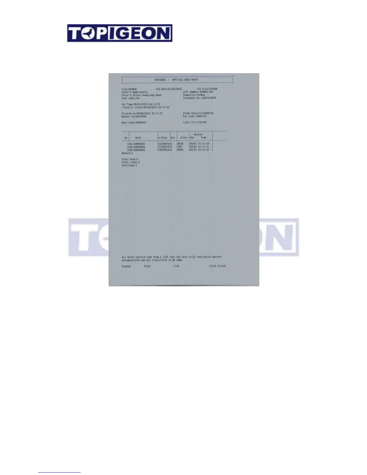 6. After printing the Basketing/Marking report, a Pigeon button will be activated to green