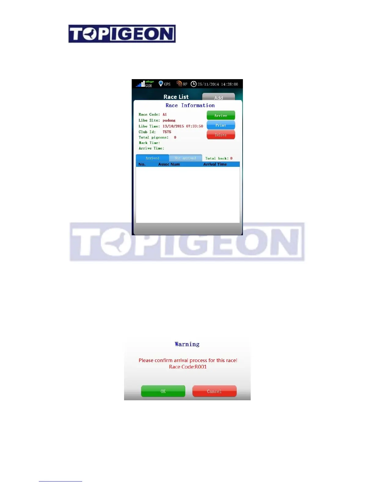 authorization key, the race information will show the Arrive button. Click on this button