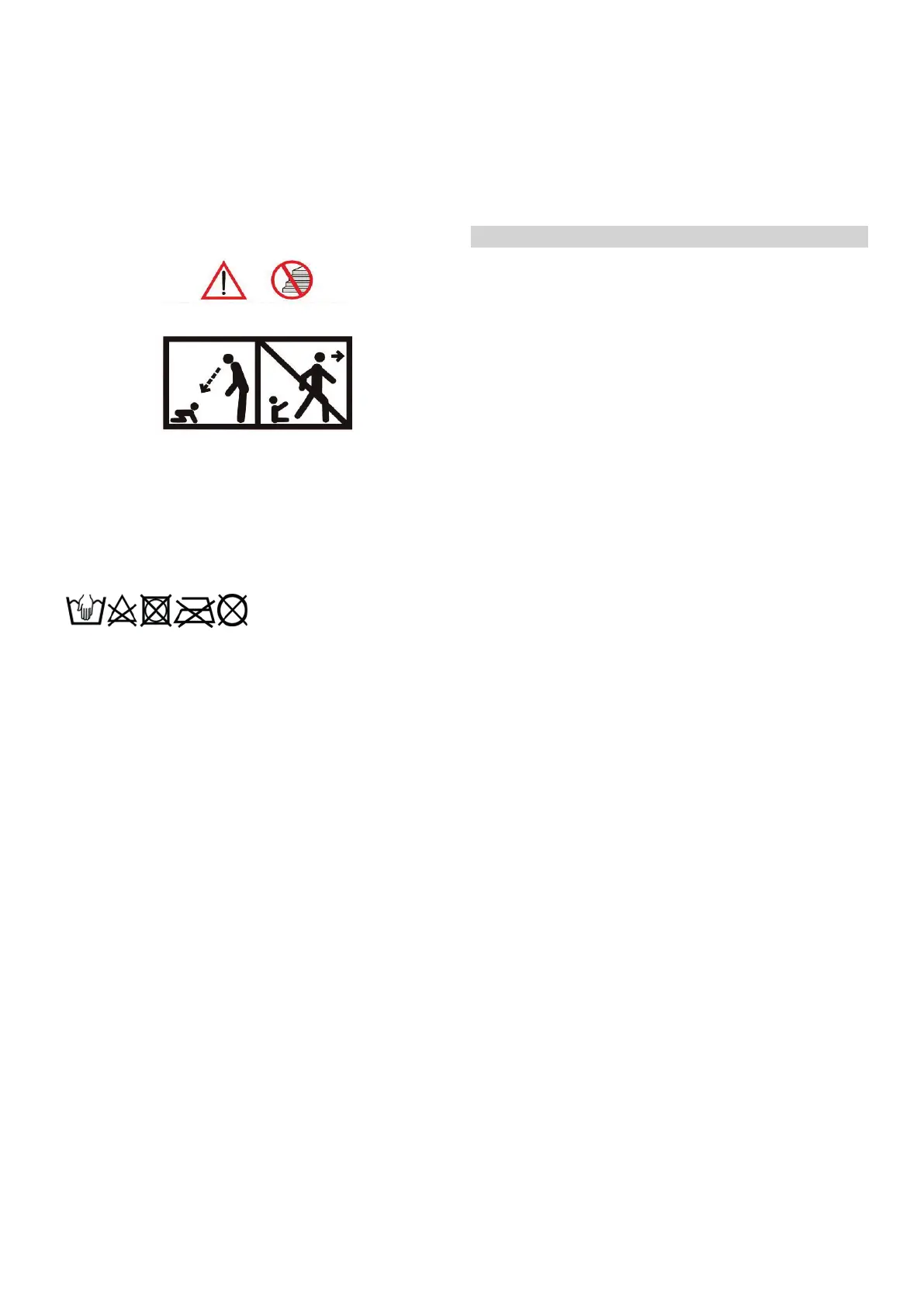 • Never leave rain covers, hoods and aprons on