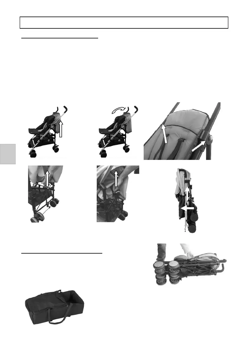 l’avant), de relever le repose-pieds et de fermer le dais en pliant la poussette.