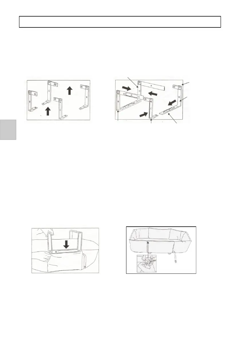 1. Zum Zusammenbauen der Babywanne die 4 Scharnierstangen auf eine ebene