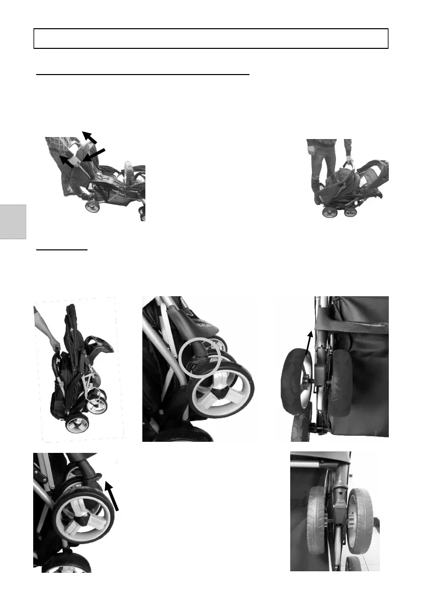 Bevor Sie dem Kinderwagen zusammen klappen, falten sie die Verdecken, Bremsen
