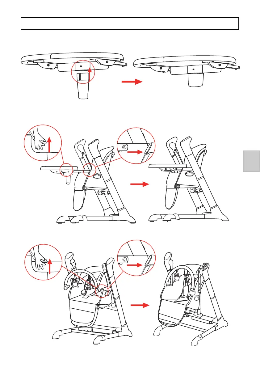 ci-dessous. Pivotez la chaise haute avec le plateau de repas.