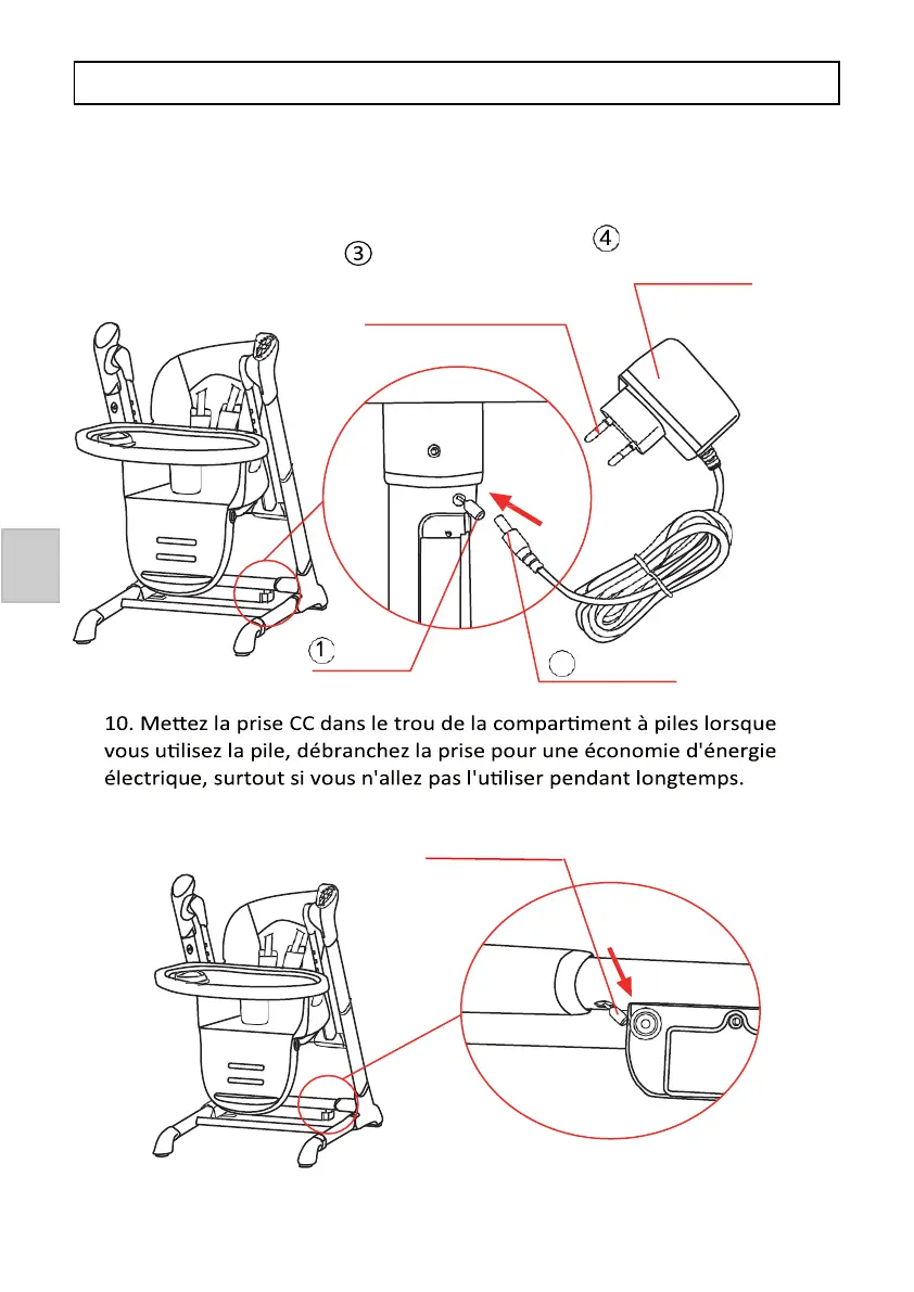 9. Instrucons pour l'adaptateur secteur. Insérez la che CC ② de l'adaptateur